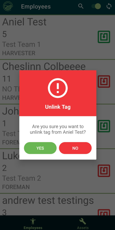 2. **Select Employee**: Click on the green NFC icon next to the employee's name whose tag you wish to unlink.