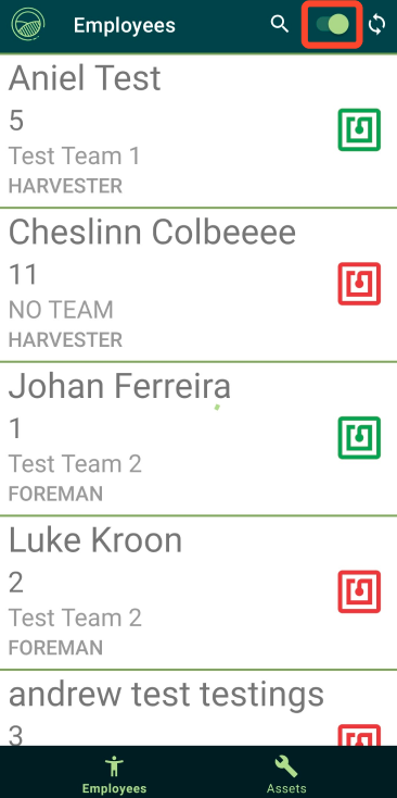 1. **Switch to Assigned View**: In the top navigation bar, use the toggle switch to view all employees with assigned tags.<br>